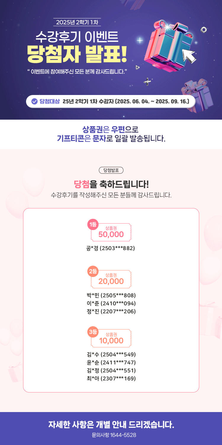 [¹ßÇ¥] 2025³â 2Çбâ(1Â÷) ¼ö°Èıâ À̺¥Æ® ´ç÷ÀÚ ¹ßÇ¥!!