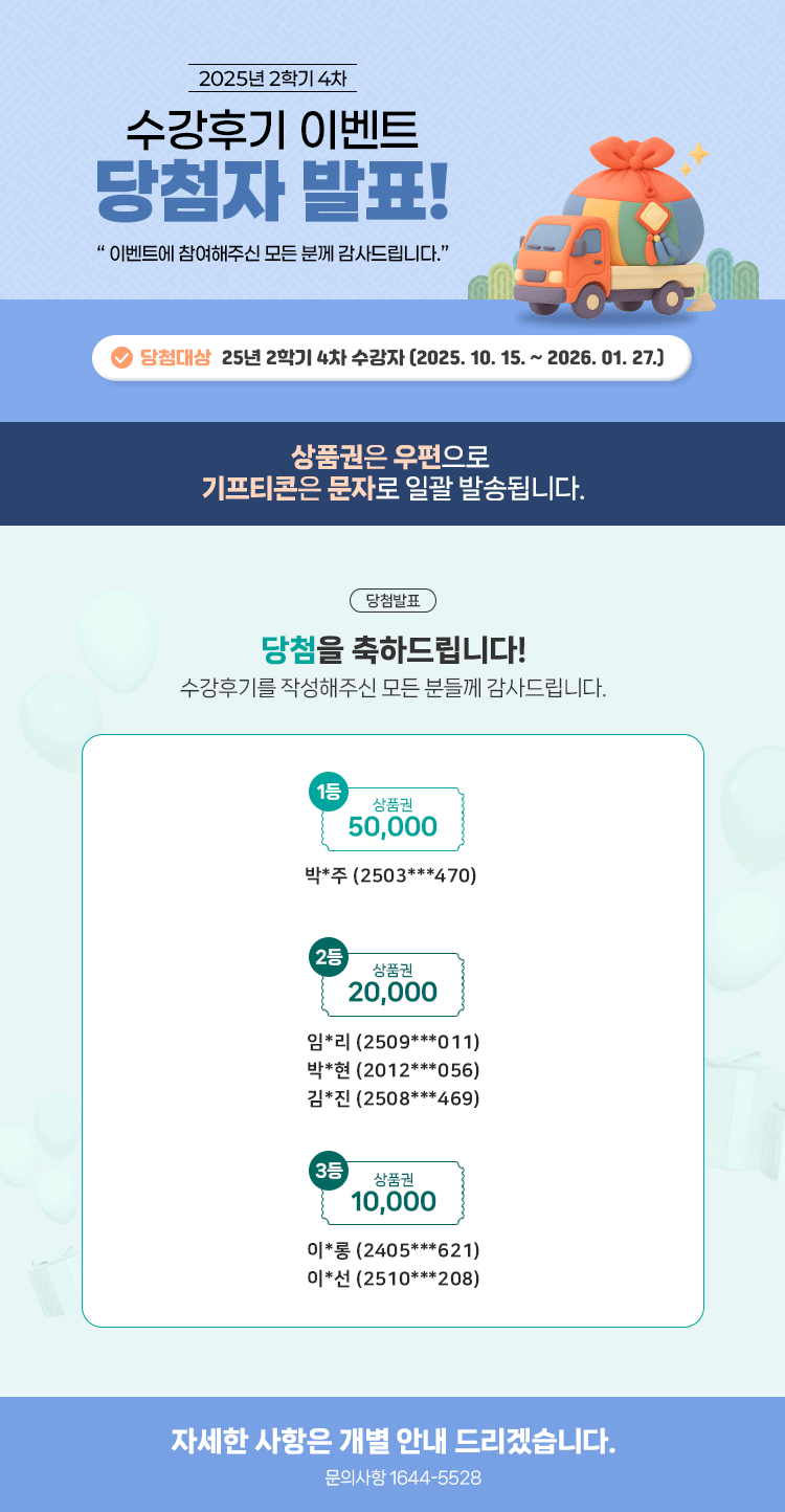 [¹ßÇ¥] 2025³â 2Çбâ(4Â÷) ¼ö°Èıâ À̺¥Æ® ´ç÷ÀÚ ¹ßÇ¥!!