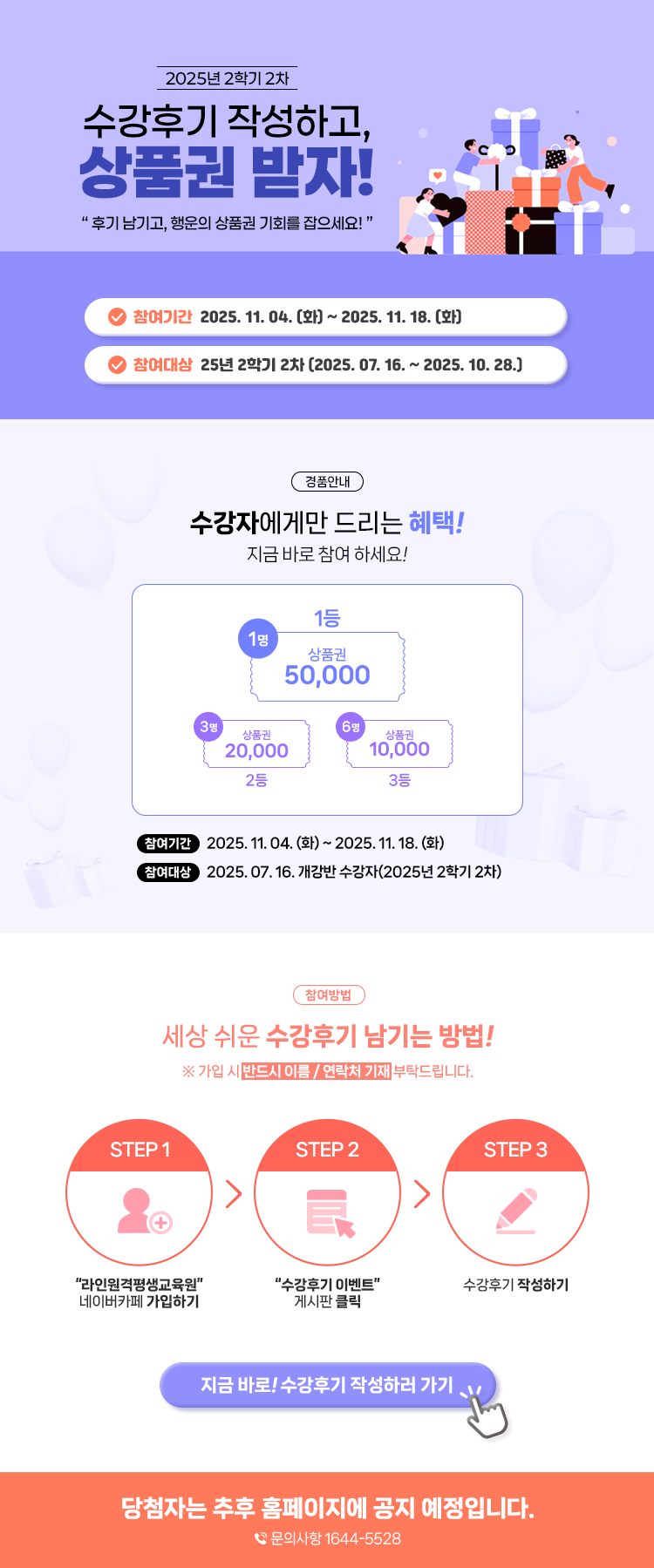 [¹ßÇ¥] 2025³â 2Çбâ(1Â÷) ¼ö°Èıâ À̺¥Æ® ´ç÷ÀÚ ¹ßÇ¥!!