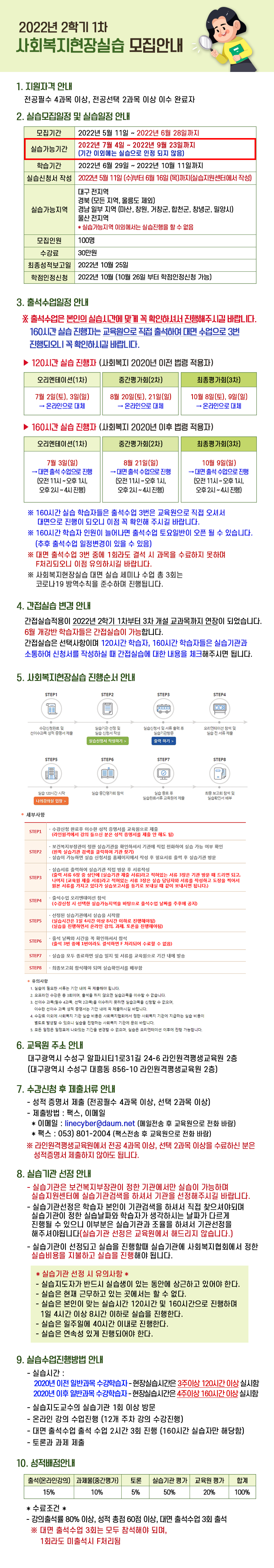 [¾È³»] 2022³â 2Çбâ 1Â÷ »çȸº¹ÁöÇöÀå½Ç½À ¸ðÁý ¾È³»ÀÔ´Ï´Ù.