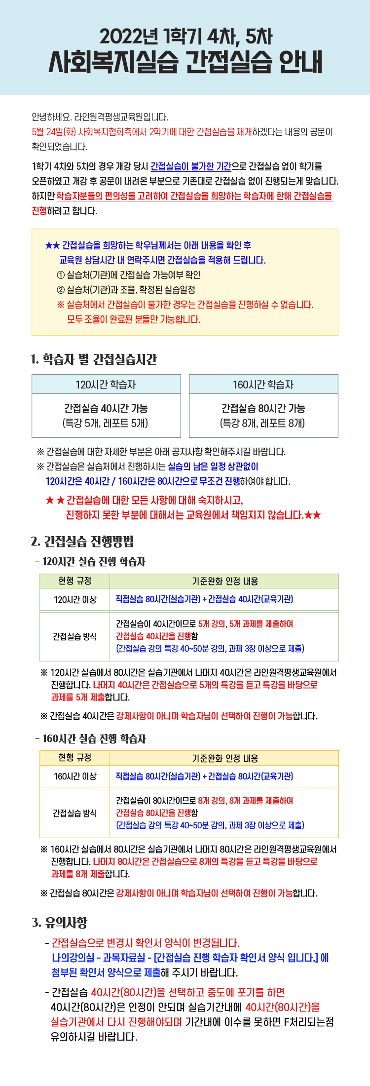 [¾È³»] 2022 1Çбâ 4Â÷, 5Â÷ »çȸº¹Áö½Ç½À °£Á¢½Ç½À ¾È³»ÀÔ´Ï´Ù