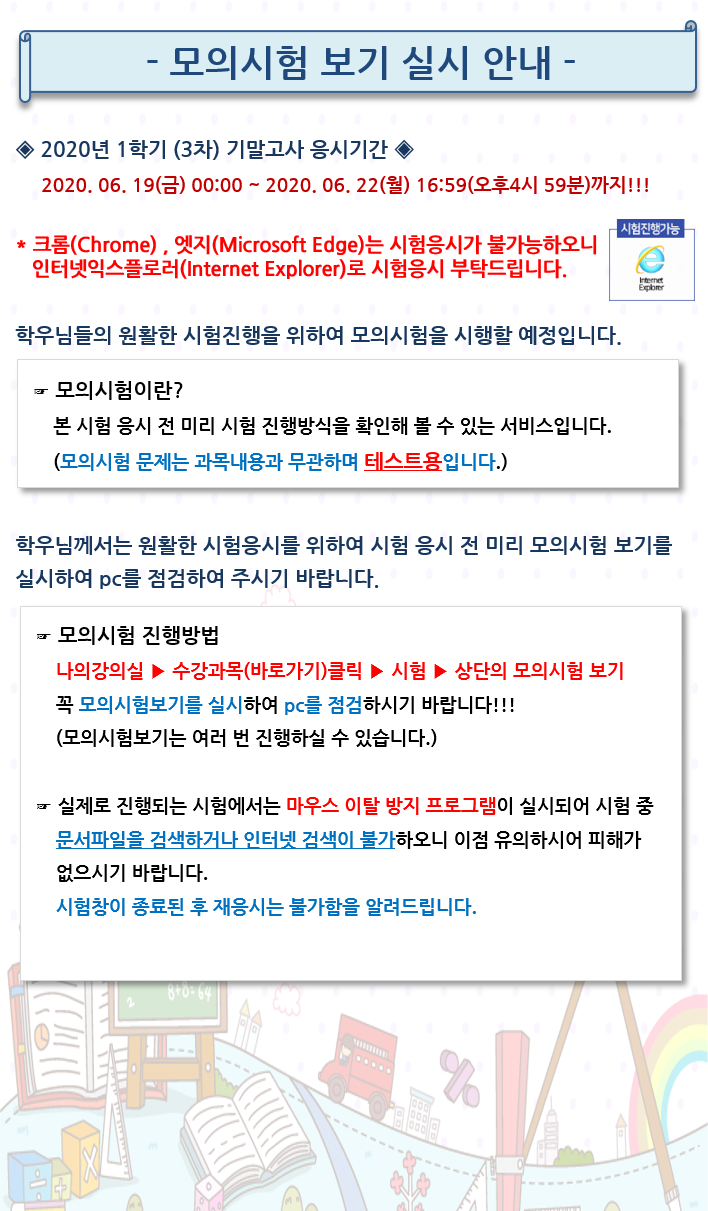 [¾È³»] 2020³â 1Çбâ(3Â÷) ±â¸»°í»ç ÀÀ½Ã Àü ¸ðÀǽÃÇè ¾È³»ÀÔ´Ï´Ù.