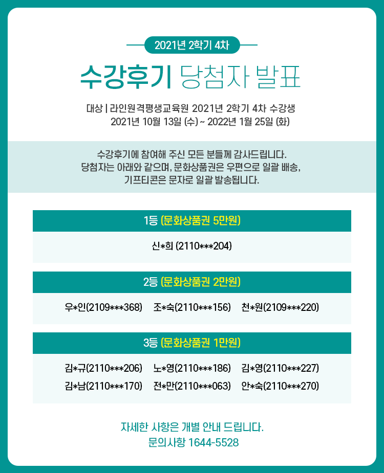 [¹ßÇ¥] 2021³â 2Çбâ(4Â÷) ¼ö°Èıâ À̺¥Æ® ´ç÷ÀÚ ¹ßÇ¥!!