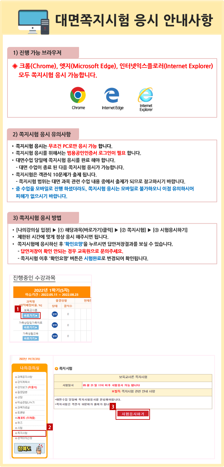 [¾È³»] 2022³â 1Çбâ 3Â÷ º¸À°´ë¸é ÂÊÁö½ÃÇè ÀÀ½Ã ¾È³»ÀÔ´Ï´Ù.