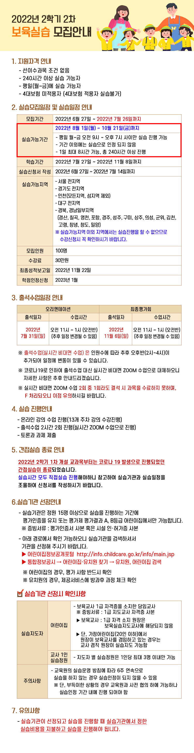 [¾È³»] 2022³â 2Çбâ 2Â÷ º¸À°½Ç½À ¸ðÁý ¾È³»ÀÔ´Ï´Ù.