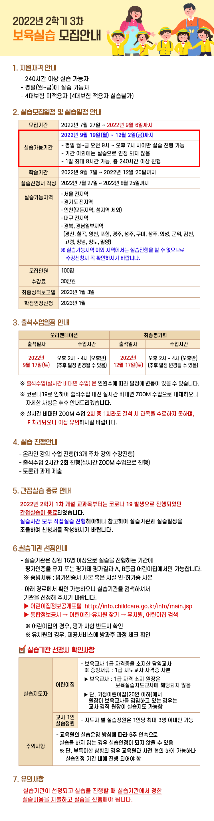 [¾È³»] 2022³â 2Çбâ 3Â÷ º¸À°½Ç½À ¸ðÁý ¾È³»ÀÔ´Ï´Ù.