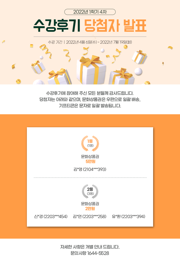 [¹ßÇ¥] 2022³â 1Çбâ(4Â÷) ¼ö°Èıâ À̺¥Æ® ´ç÷ÀÚ ¹ßÇ¥!!