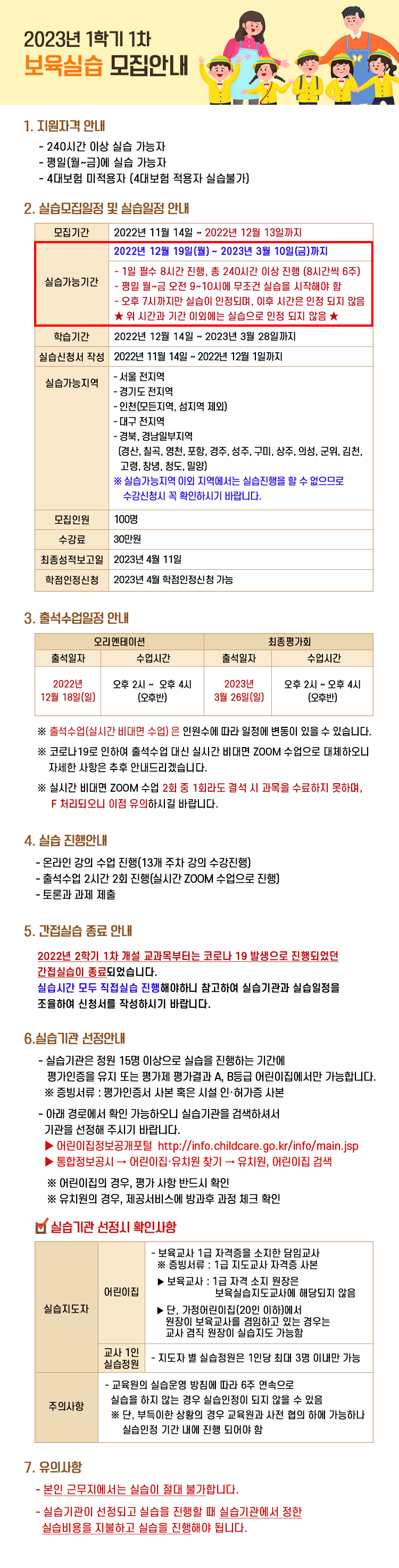 [¾È³»] 2023³â 1Çбâ 1Â÷ º¸À°½Ç½À ¸ðÁý ¾È³»ÀÔ´Ï´Ù.