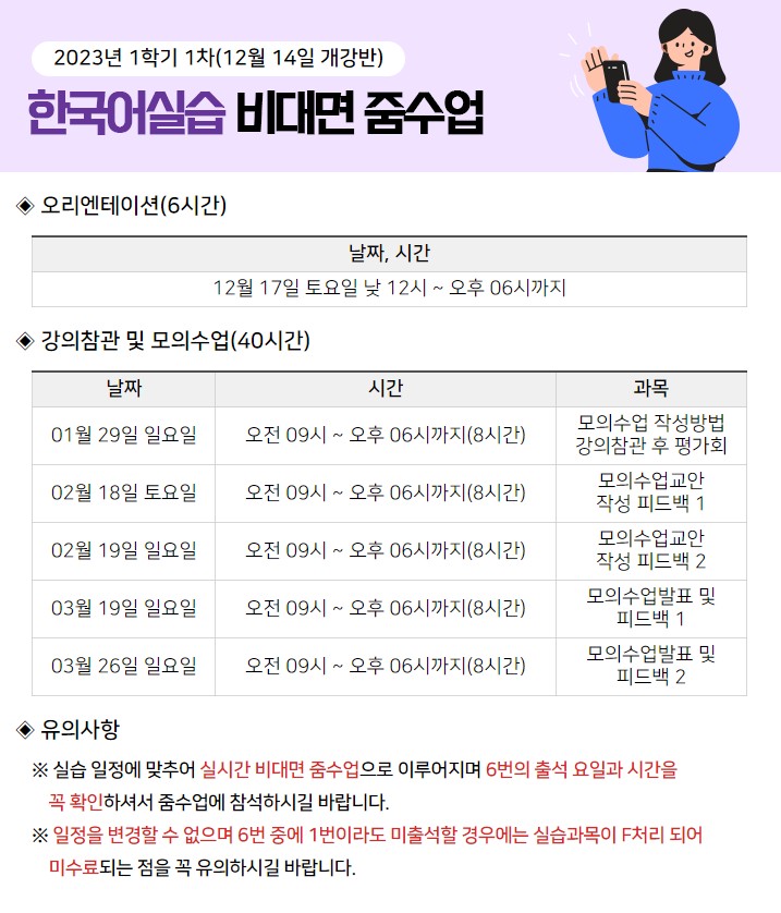 [2023³â 1Çбâ 1Â÷] Çѱ¹¾î½Ç½À Áܼö¾÷ ÀÏÁ¤ ¾È³»ÀÔ´Ï´Ù.