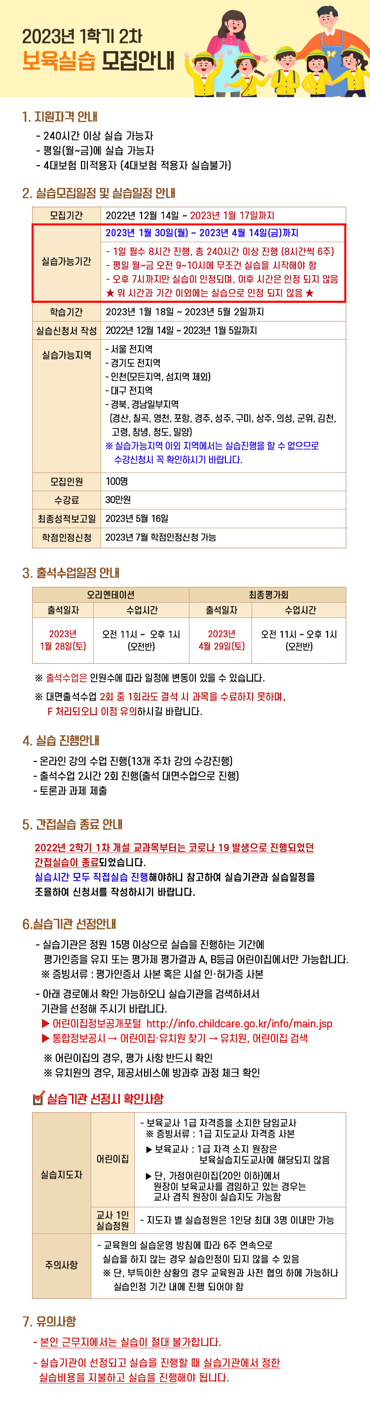 [¾È³»] 2023³â 1Çбâ 2Â÷ º¸À°½Ç½À ¸ðÁý ¾È³»ÀÔ´Ï´Ù.