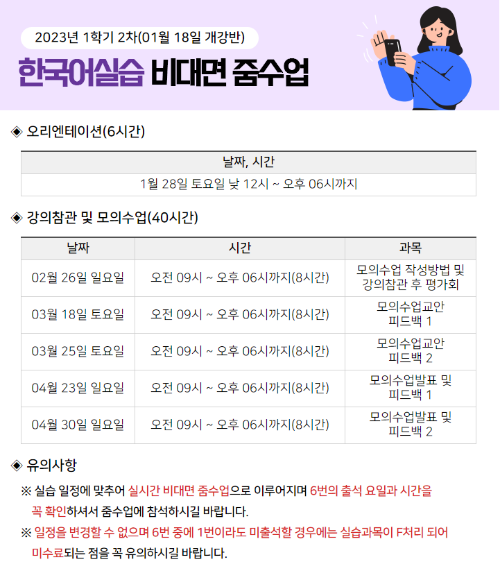 [2023³â 1Çбâ 2Â÷] Çѱ¹¾î½Ç½À Áܼö¾÷ ÀÏÁ¤ ¾È³»ÀÔ´Ï´Ù.