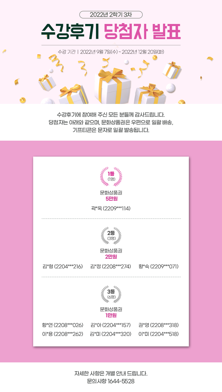 [¹ßÇ¥] 2022³â 2Çбâ(3Â÷) ¼ö°Èıâ À̺¥Æ® ´ç÷ÀÚ ¹ßÇ¥!!