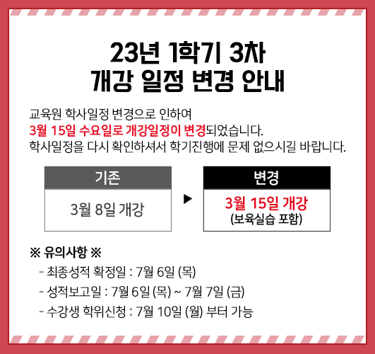 [2023³â 1Çбâ(3Â÷)] °³°ÀÏÁ¤ º¯°æ ¾È³»ÀÔ´Ï´Ù.