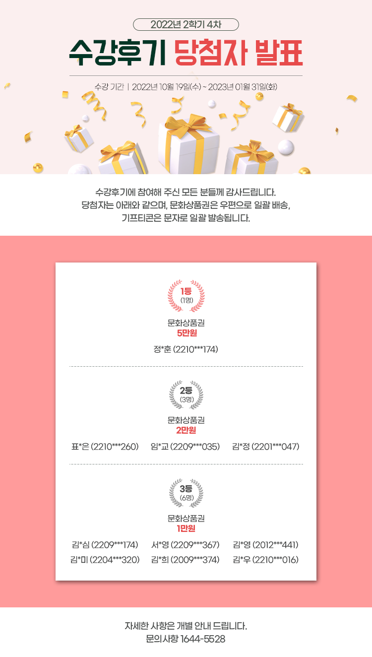 [¹ßÇ¥] 2022³â 2Çбâ(4Â÷) ¼ö°Èıâ À̺¥Æ® ´ç÷ÀÚ ¹ßÇ¥!!