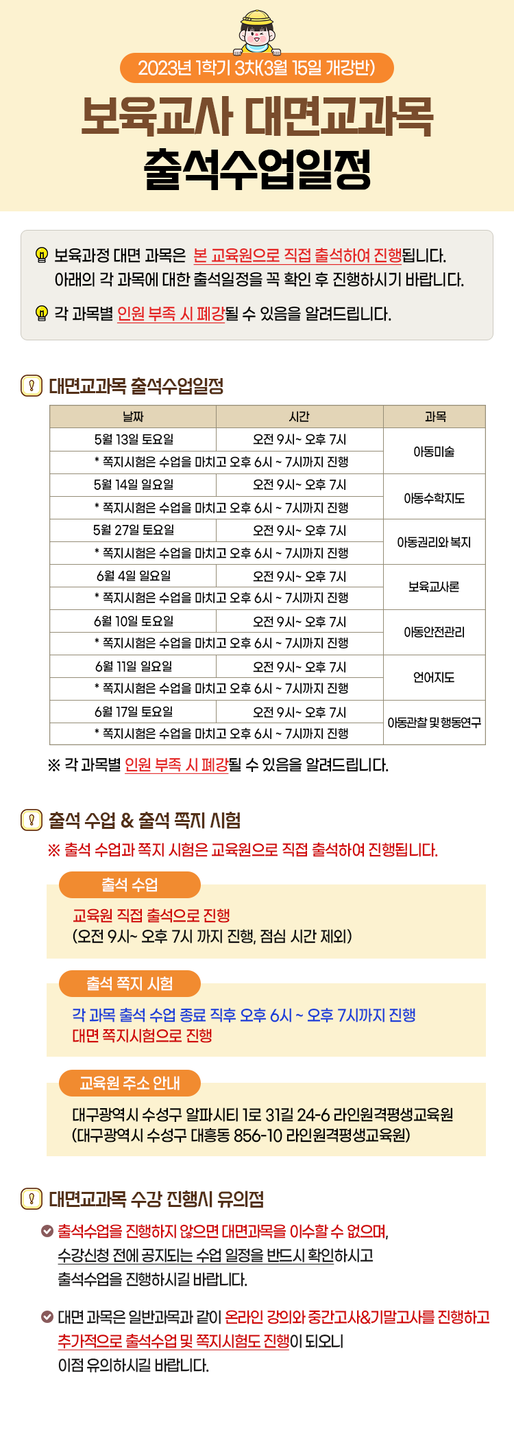 [2023³â 1Çбâ 3Â÷] º¸À°´ë¸é°ú¸ñ Ãâ¼®ÀÏÁ¤ ¾È³»ÀÔ´Ï´Ù.