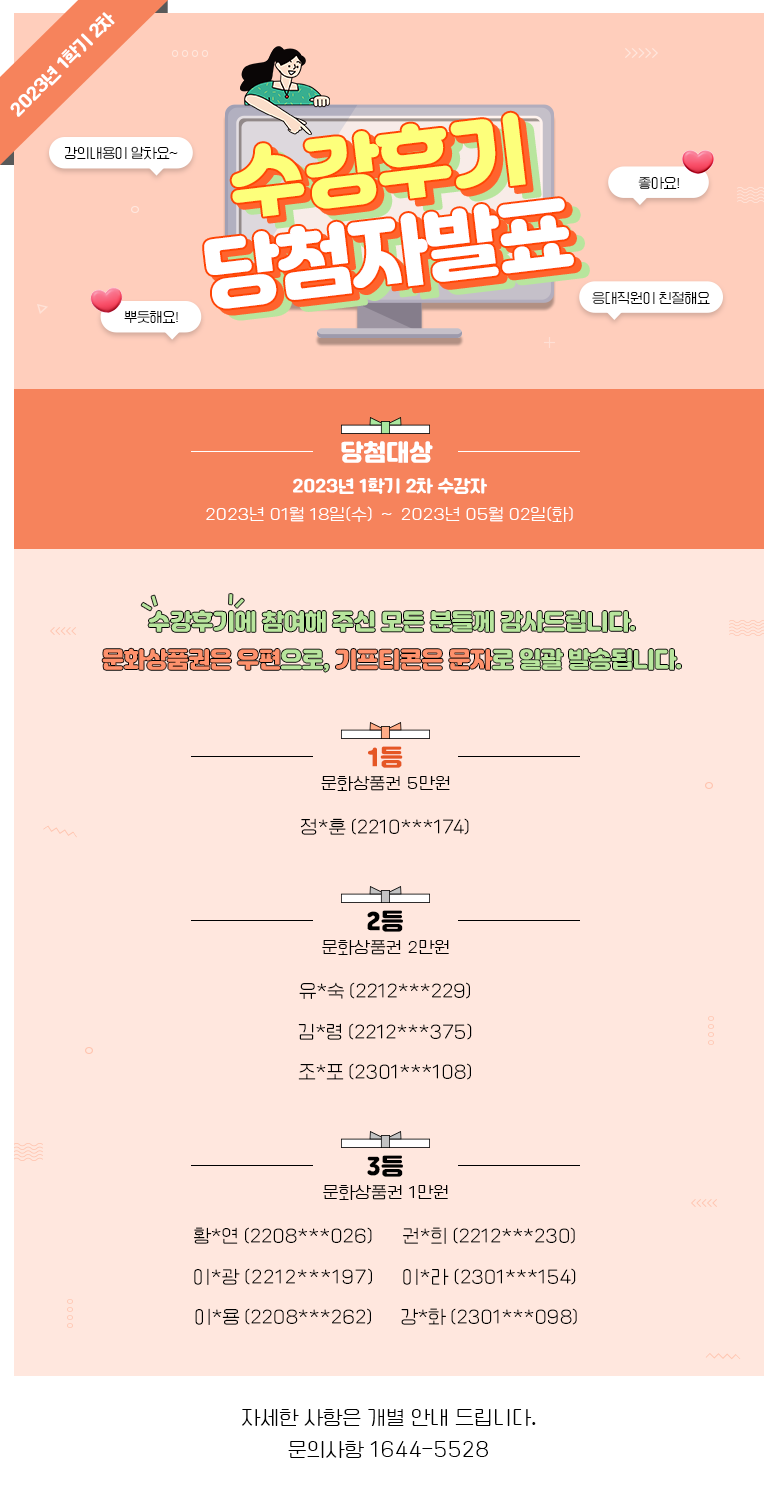 [¹ßÇ¥] 2023³â 1Çбâ(2Â÷) ¼ö°Èıâ À̺¥Æ® ´ç÷ÀÚ ¹ßÇ¥!!