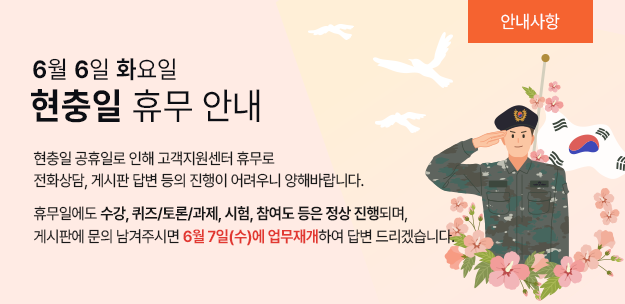 [¾È³»] ÇöÃæÀÏ ÈÞ¹« ¾È³»ÀÔ´Ï´Ù.