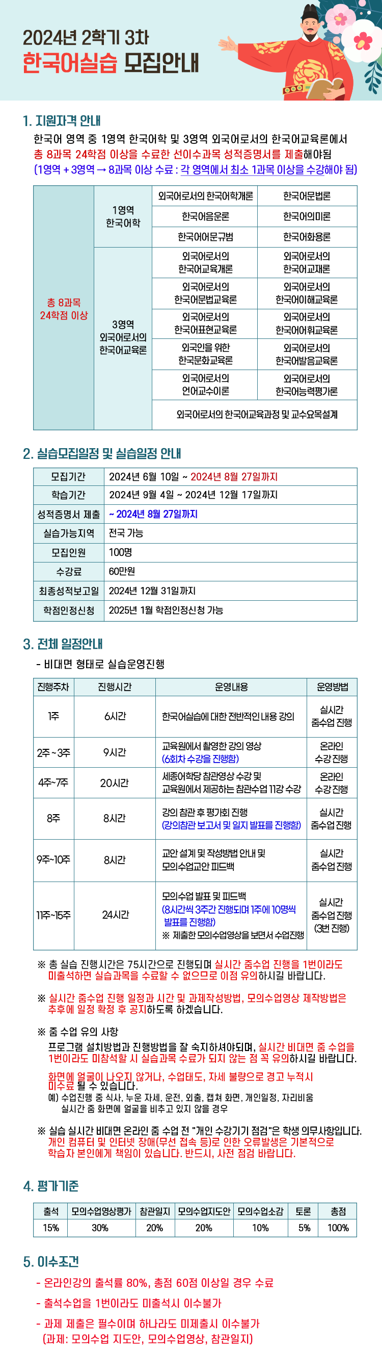 [¾È³»] 2024³â 2Çбâ 3Â÷ Çѱ¹¾î½Ç½À ¸ðÁý ¾È³»ÀÔ´Ï´Ù.
