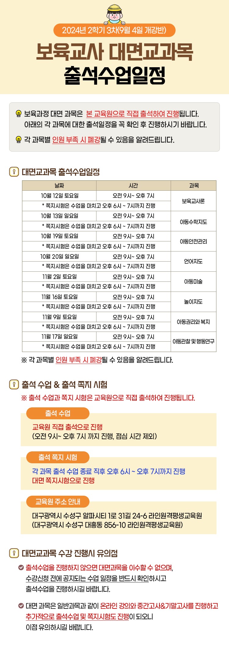 [2024³â 2Çбâ 3Â÷] º¸À°´ë¸é Ãâ¼®¼ö¾÷ÀÏÁ¤ ¾È³»ÀÔ´Ï´Ù.