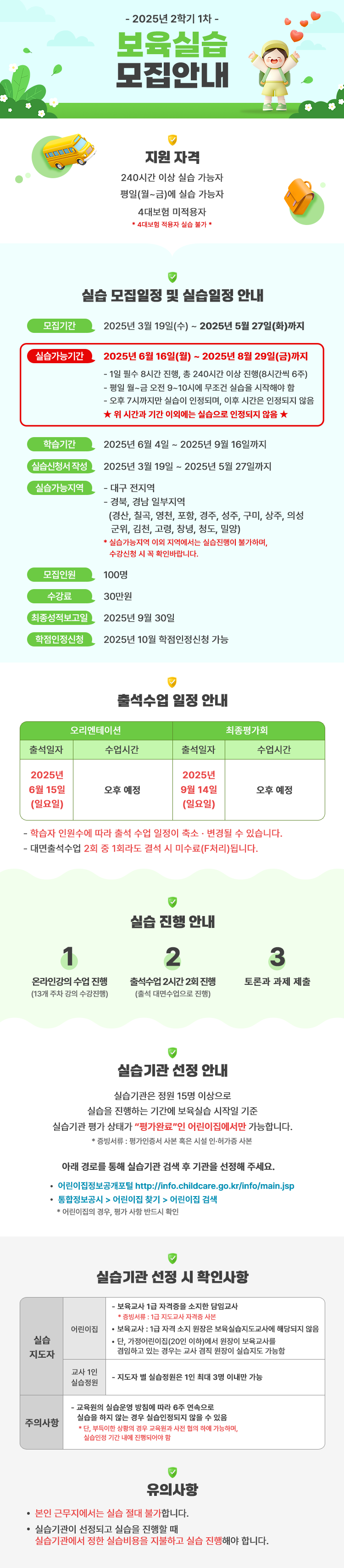 [¾È³»] 2025³â 2Çбâ 1Â÷ º¸À°½Ç½À ¸ðÁý ¾È³»ÀÔ´Ï´Ù.