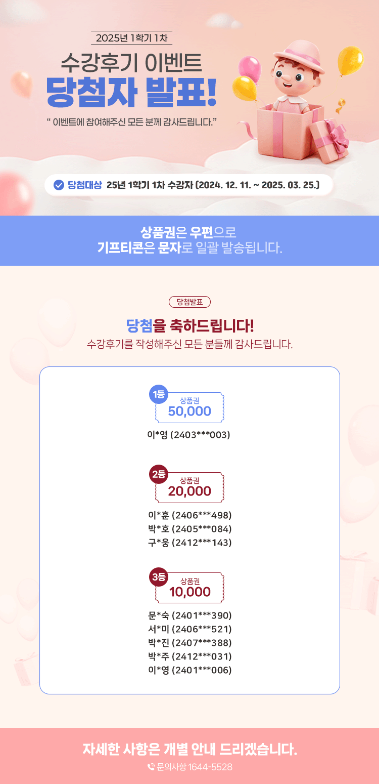 [¹ßÇ¥] 2025³â 1Çбâ(1Â÷) ¼ö°Èıâ À̺¥Æ® ´ç÷ÀÚ ¹ßÇ¥!!