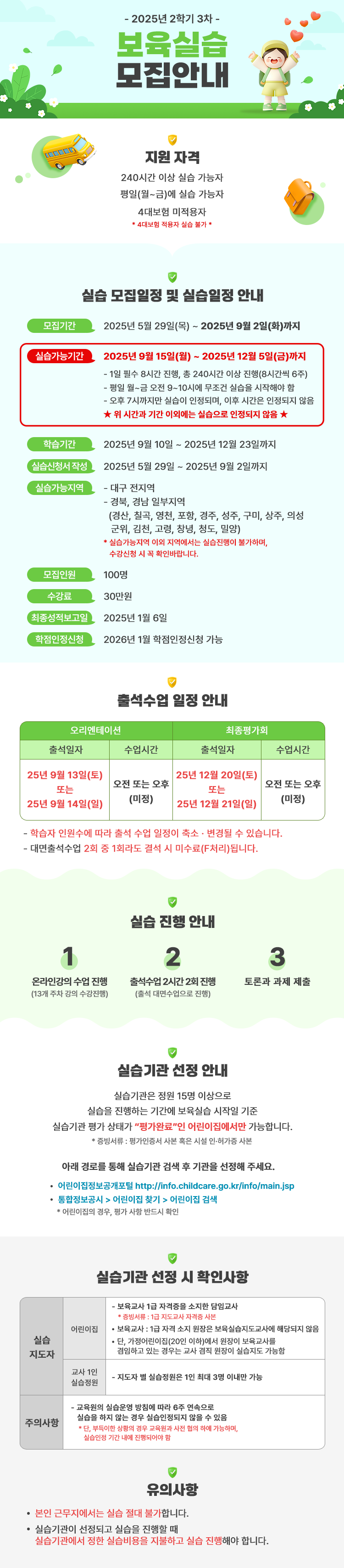 [¾È³»] 2025³â 2Çбâ 3Â÷ º¸À°½Ç½À ¸ðÁý ¾È³»ÀÔ´Ï´Ù.