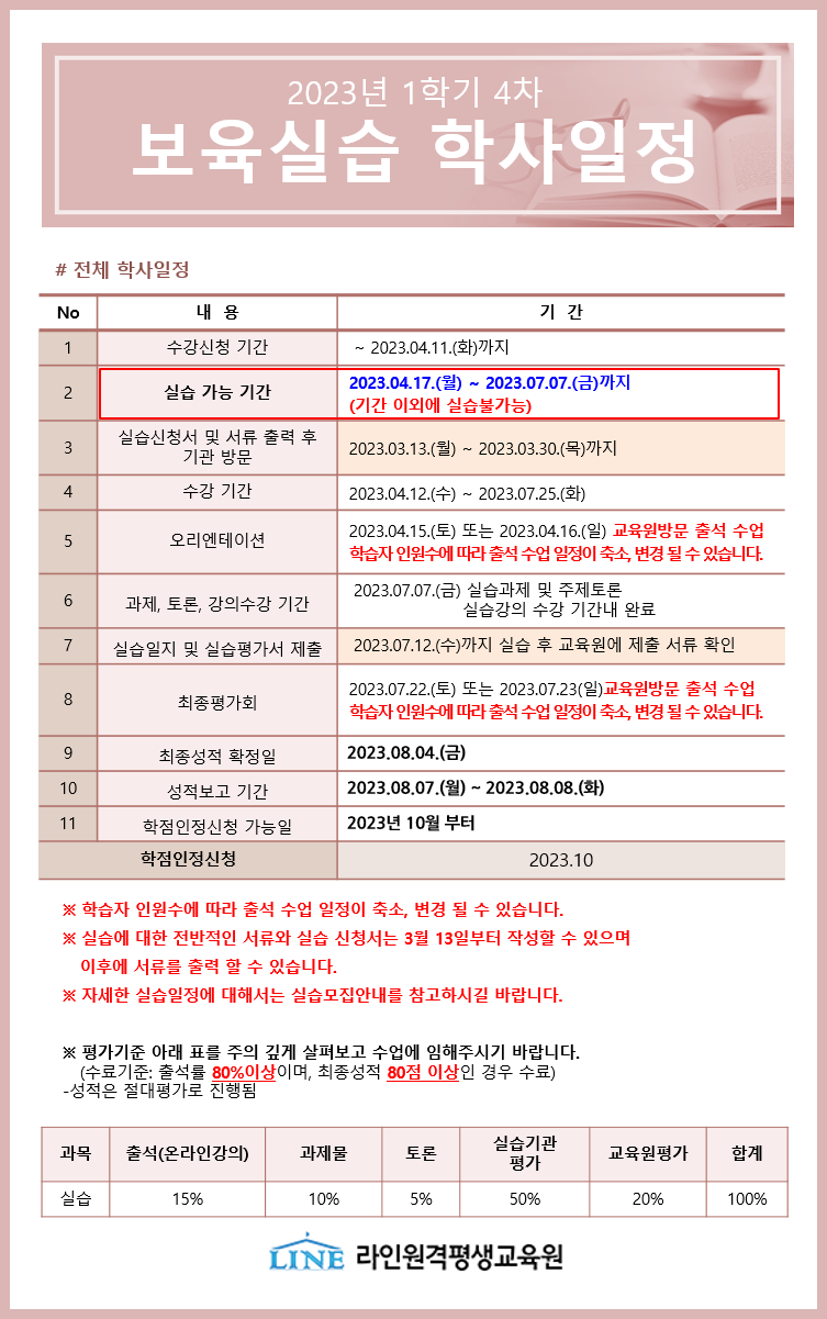 2023³â 1Çбâ (4Â÷) º¸À°½Ç½À ÇлçÀÏÁ¤