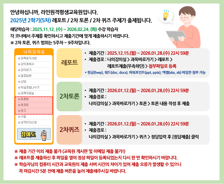 [2025³â 2Çбâ(5Â÷)] ·¹Æ÷Æ®, 2Â÷ÄûÁî, 2Â÷Åä·Ð ¾È³»ÀÔ´Ï´Ù.