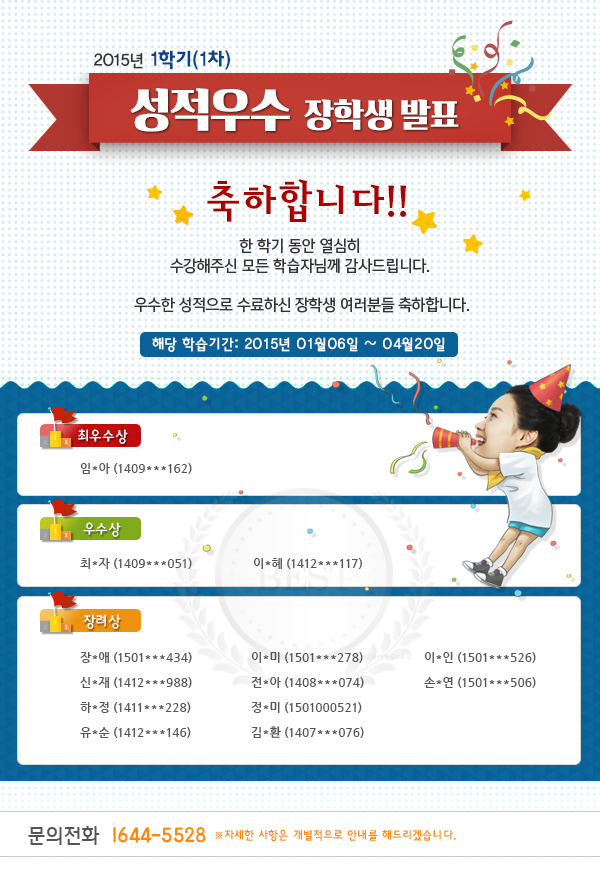 [¹ßÇ¥]2015³â 1Çбâ(1Â÷) ¼ºÀû¿ì¼ö ÀåÇлý ¹ßÇ¥!!