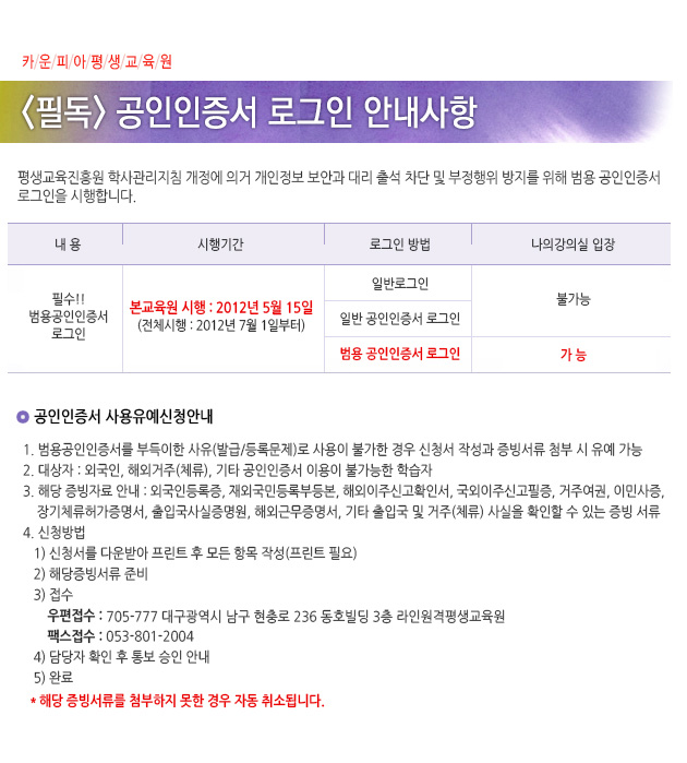 [°øÁö]Ä«¿îÇÇ¾ÆÆò»ý±³À°¿ø ¹ü¿ë °øÀÎÀÎÁõ¼ »ç¿ë¾È³»