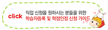 *±¹°¡Æò»ý±³À°ÁøÈï¿ø¿¡¼ Á÷Á¢ ÇнÀÀÚµî·Ï ¹× ÇÐÁ¡ÀÎÁ¤½ÅûÀ» ¿øÇÏ´Â ÇнÀÀںе鲲¼´Â ÇÏ´ÜÀÇ ¹öưÀ» Ŭ¸¯ÇÏ¿© Âü°íÇϽñ⠹ٶø´Ï´Ù.