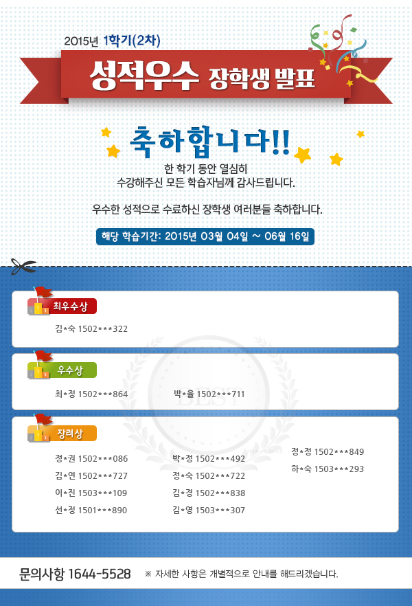 [¹ßÇ¥]2015³â 1Çбâ(2Â÷) ¼ºÀû¿ì¼ö ÀåÇлý ¹ßÇ¥!!
