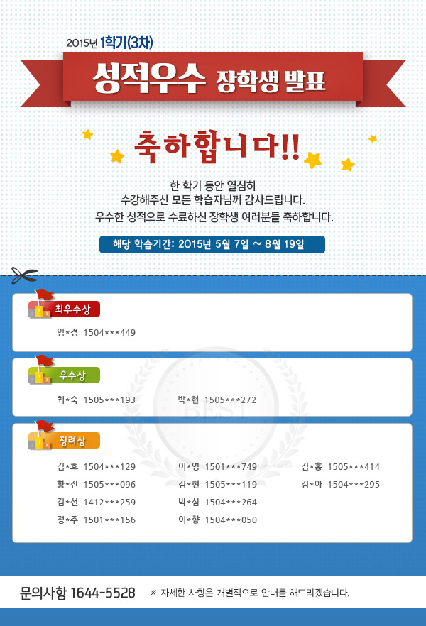 [¹ßÇ¥]2015³â 1Çбâ(3Â÷) ¼ºÀû¿ì¼ö ÀåÇлý ¹ßÇ¥!!