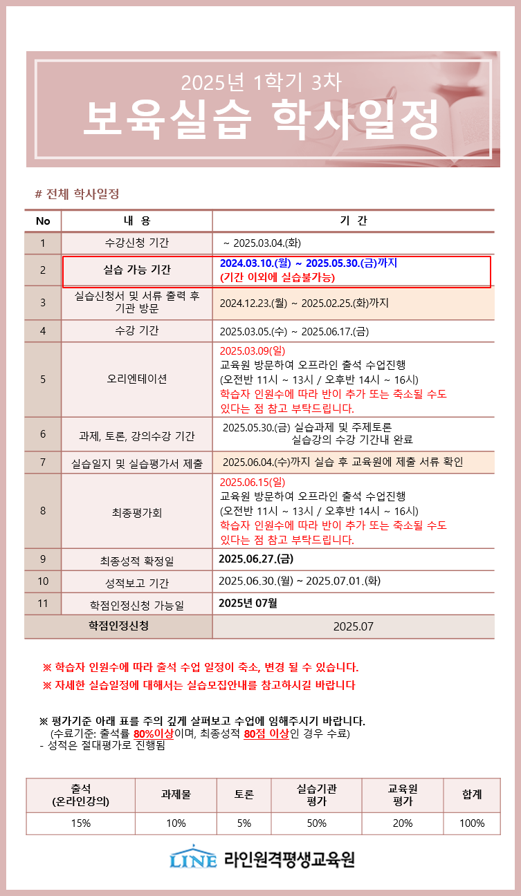 2025³â 1Çбâ(3Â÷) º¸À°½Ç½À ÇлçÀÏÁ¤