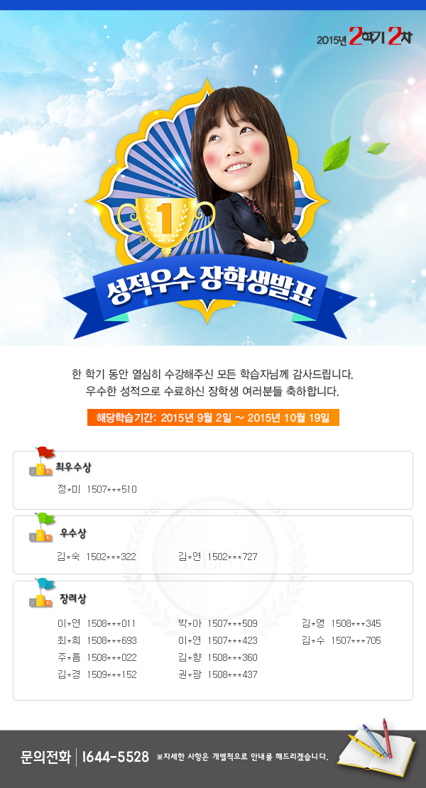 [¹ßÇ¥]2015³â 2Çбâ(2Â÷) ¼ºÀû¿ì¼ö ÀåÇлý ¹ßÇ¥!!