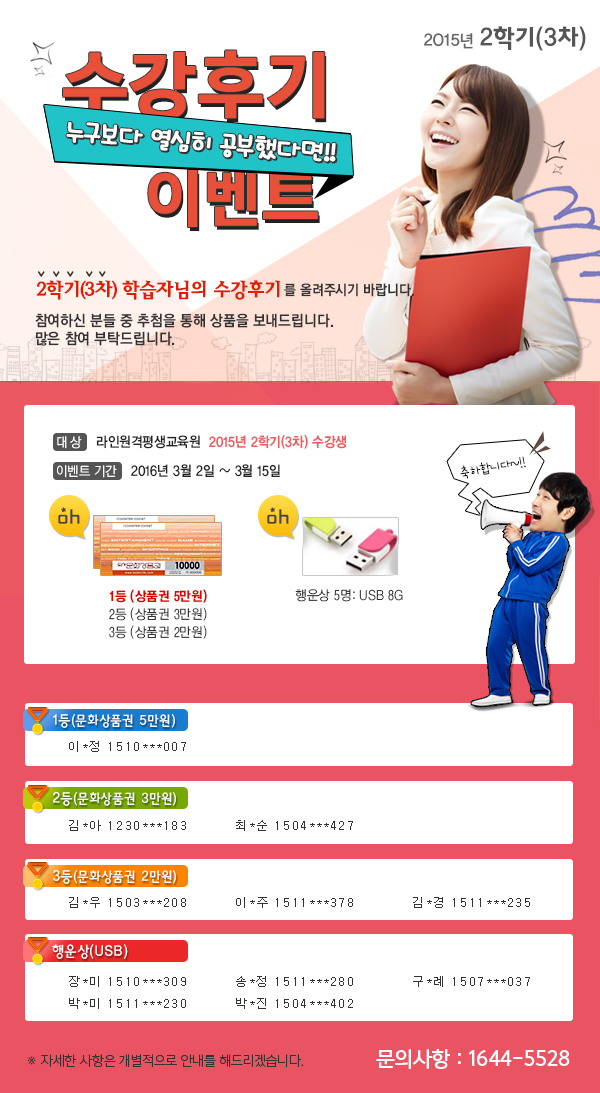 [¹ßÇ¥]2015³â 2Çбâ(3Â÷) ¼ö°Èıâ À̺¥Æ® ´ç÷ÀÚ ¹ßÇ¥!!