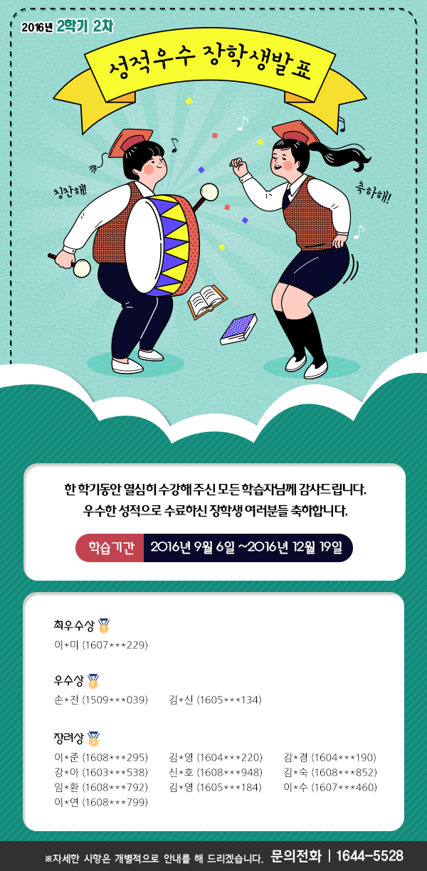 [¹ßÇ¥]2016³â 2Çбâ(2Â÷) ¼ºÀû¿ì¼ö ÀåÇлý ¹ßÇ¥!!
