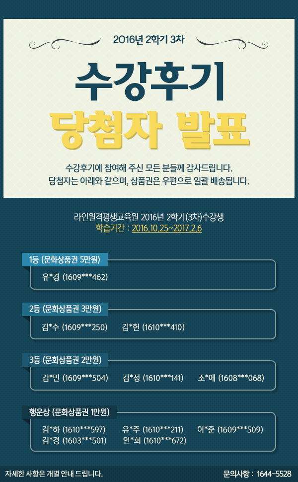 [¹ßÇ¥]2016³â 2Çбâ(3Â÷) ¼ö°Èıâ À̺¥Æ® ´ç÷ÀÚ ¹ßÇ¥!!
