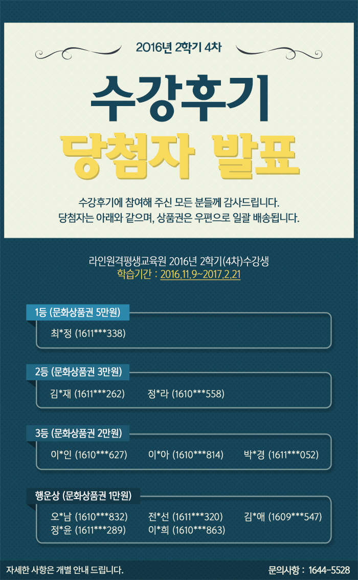 [¹ßÇ¥]2016³â 2Çбâ(4Â÷) ¼ö°Èıâ À̺¥Æ® ´ç÷ÀÚ ¹ßÇ¥!!