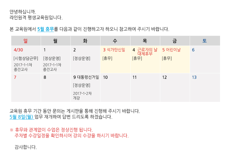 [¾È³»] 5¿ù ÈÞ¹« ¾È³»