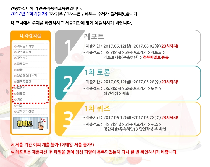 [2017³â 1Çбâ(2Â÷)] ·¹Æ÷Æ®, 1Â÷ÄûÁî, 1Â÷Åä·Ð ¾È³»ÀÔ´Ï´Ù.