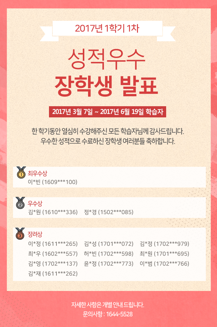 [¹ßÇ¥]2017³â 1Çбâ(1Â÷) ¼ºÀû¿ì¼ö ÀåÇлý ¹ßÇ¥!!