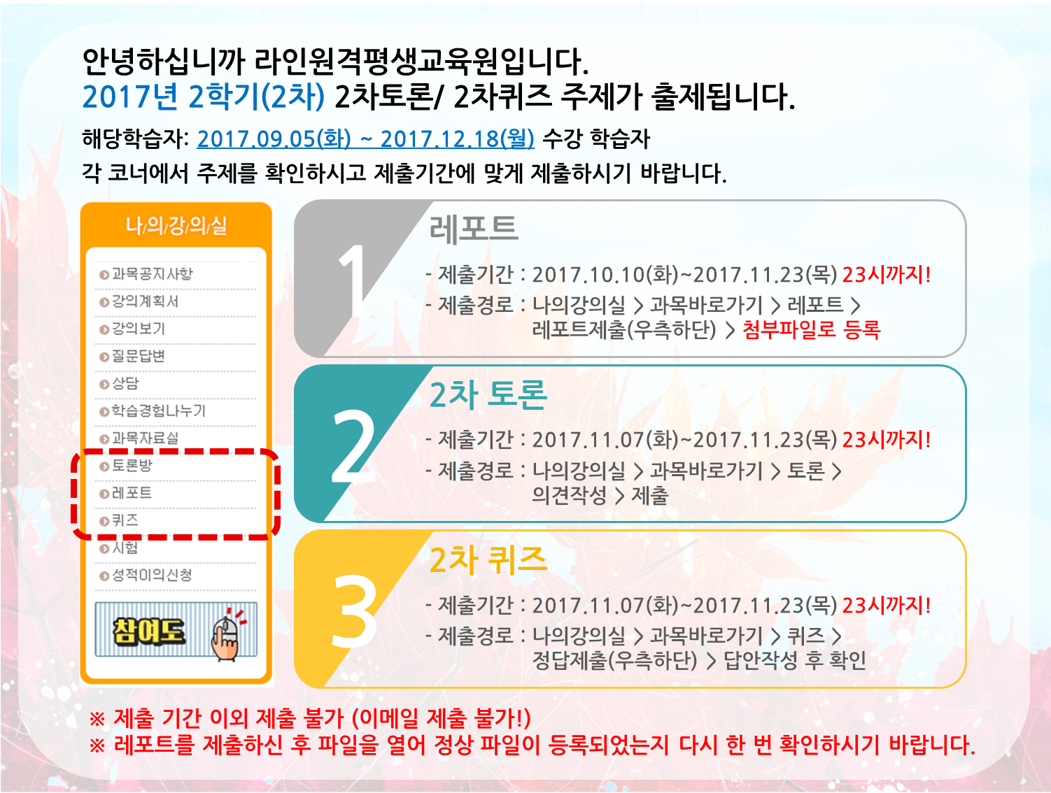 [2017³â 2Çбâ(2Â÷)] 2Â÷ÄûÁî, 2Â÷Åä·Ð ¾È³»ÀÔ´Ï´Ù.