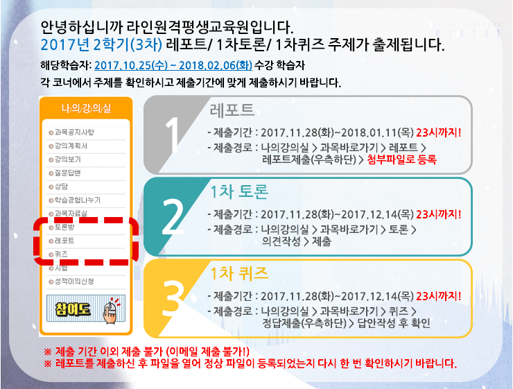 [2017³â 2Çбâ(3Â÷)] ·¹Æ÷Æ®, 1Â÷ÄûÁî, 1Â÷Åä·Ð ¾È³»ÀÔ´Ï´Ù.