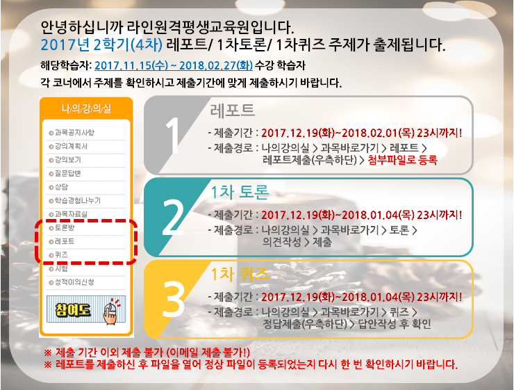 [2017³â 2Çбâ(4Â÷)] ·¹Æ÷Æ®, 1Â÷ÄûÁî, 1Â÷Åä·Ð ¾È³»ÀÔ´Ï´Ù.