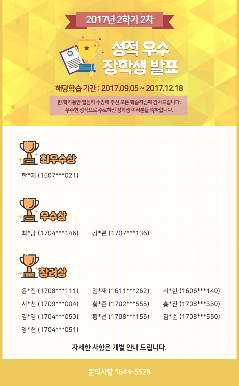 [¹ßÇ¥]2017³â 2Çбâ(2Â÷) ¼ºÀû¿ì¼ö ÀåÇлý ¹ßÇ¥!!