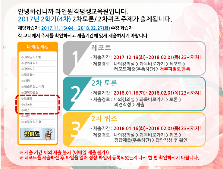 [2017³â 2Çбâ(4Â÷)] 2Â÷ÄûÁî, 2Â÷Åä·Ð ¾È³»ÀÔ´Ï´Ù.