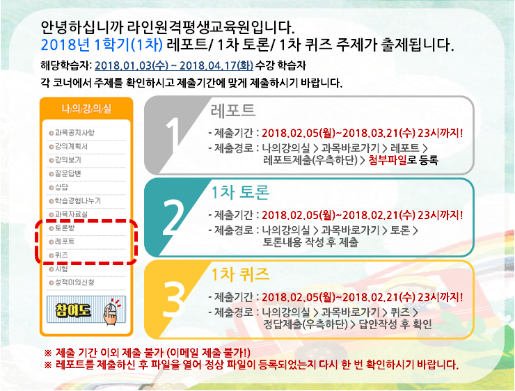 [2018³â 1Çбâ(1Â÷)] ·¹Æ÷Æ®, 1Â÷ÄûÁî, 1Â÷Åä·Ð ¾È³»ÀÔ´Ï´Ù.