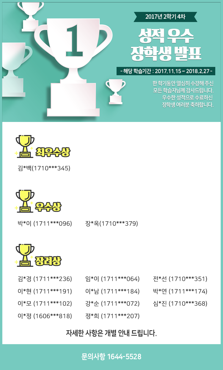 [¹ßÇ¥] 2017³â 2Çбâ(4Â÷) ¼ºÀû¿ì¼ö ÀåÇлý ¹ßÇ¥!!