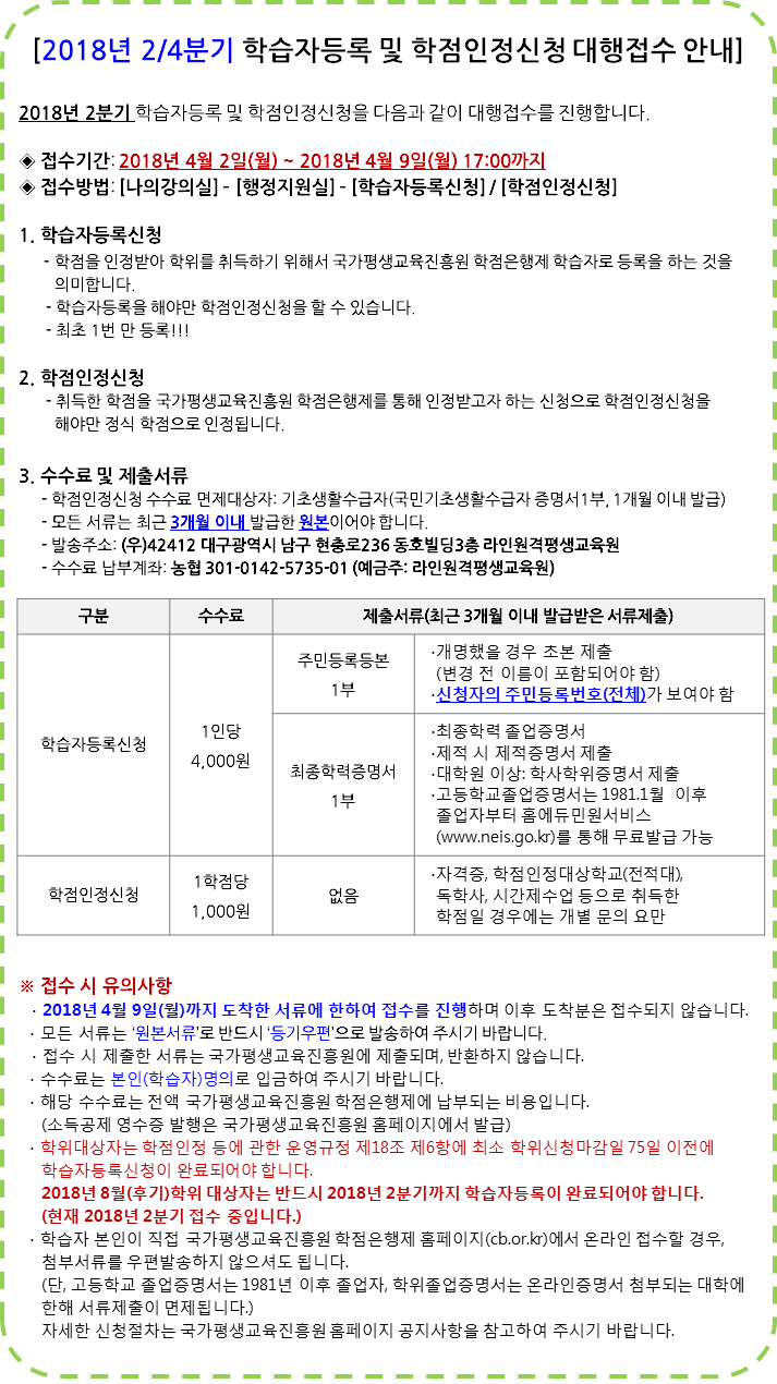 [Á¢¼ö¾È³»]2018³â 2ºÐ±â ÇнÀÀÚµî·Ï ¹× ÇÐÁ¡ÀÎÁ¤½Åû ´ëÇàÁ¢¼ö ¾È³»